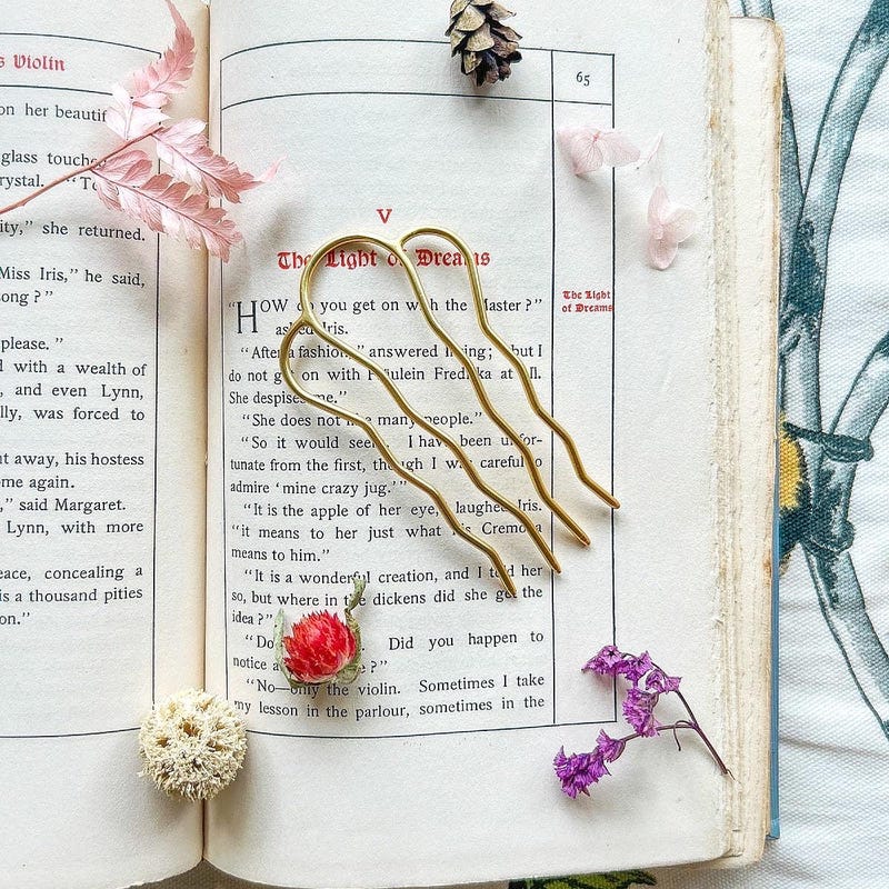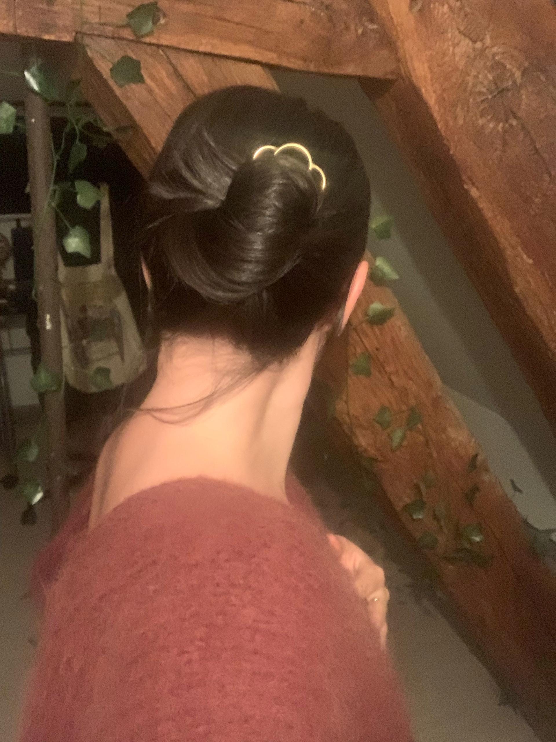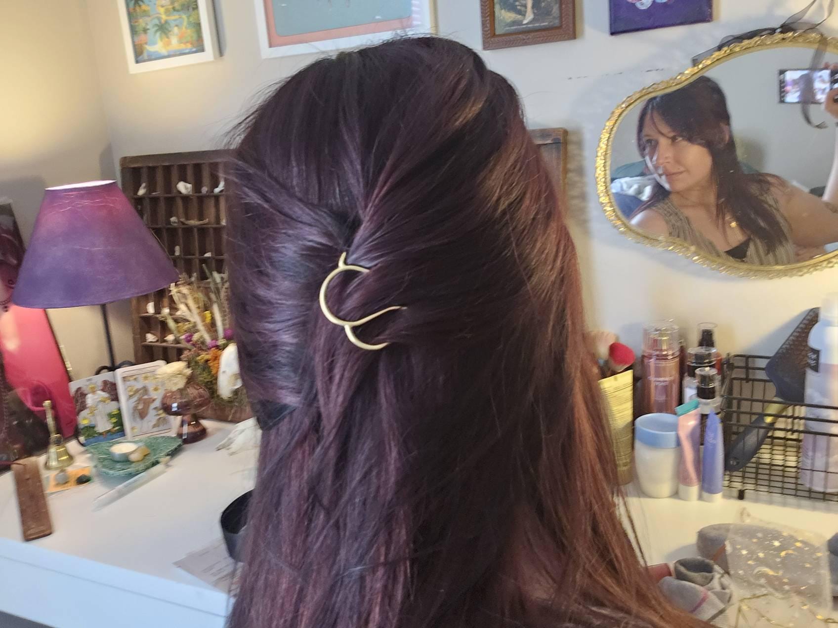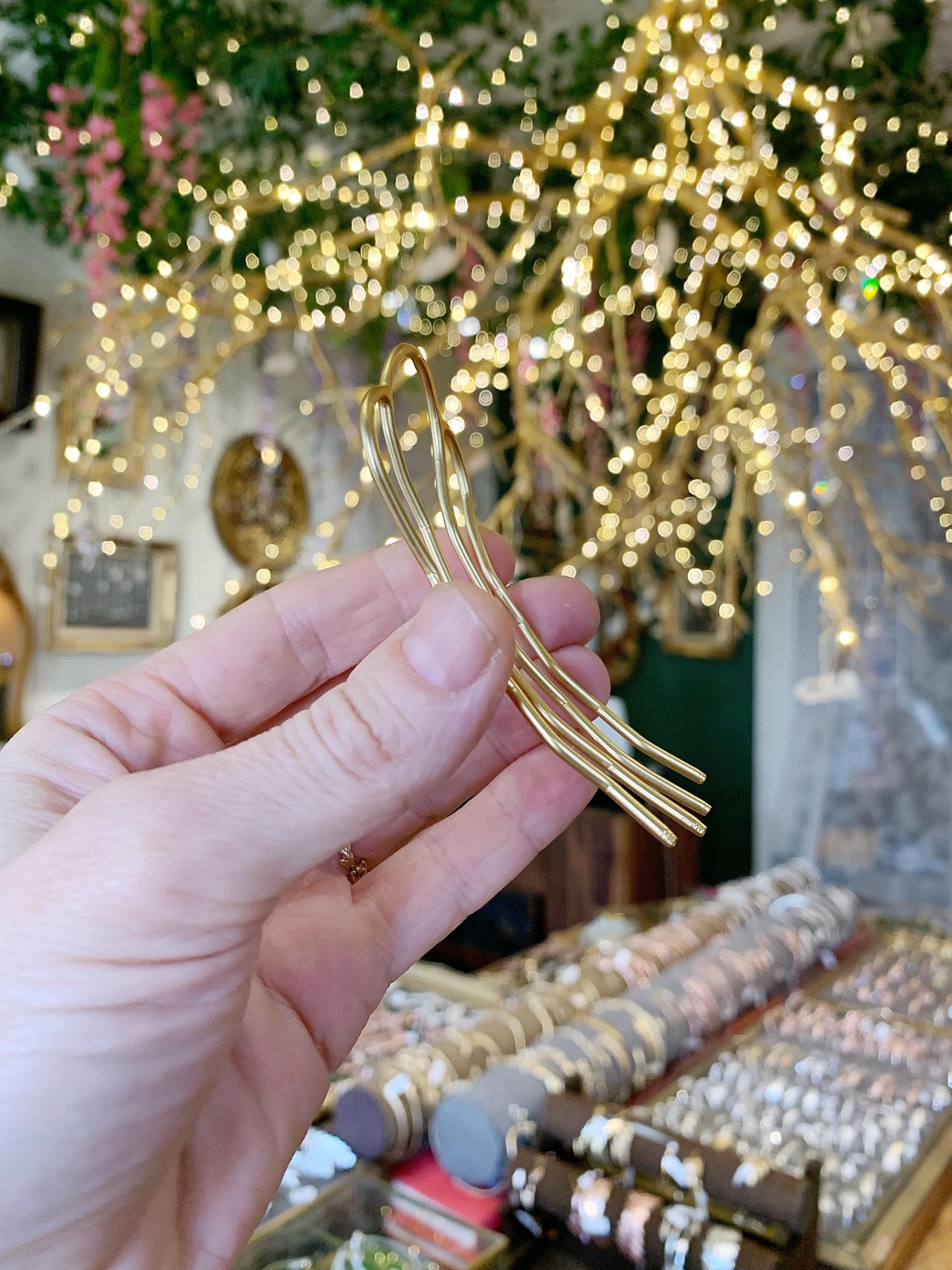This simple, versatile hair pin is the most essential tool for goddesses of all hair types. The four prong ergonomic wave design has the power to secure and pin your hair in a variety of different hair styles, from half up half down, to a high ponytail, to a side sweep, to a French twist, and many more. We suggest that the shortest layer of hair length is chin length or longer for best results.